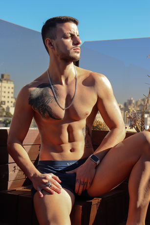 Você posa nu, de cueca ou com uma roupa que sensualize seu corpo.